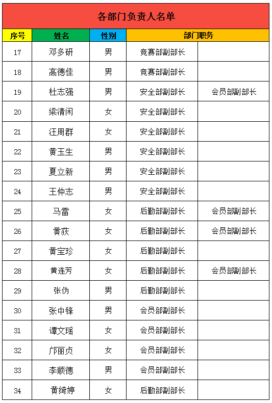 三、各部门负责人名单